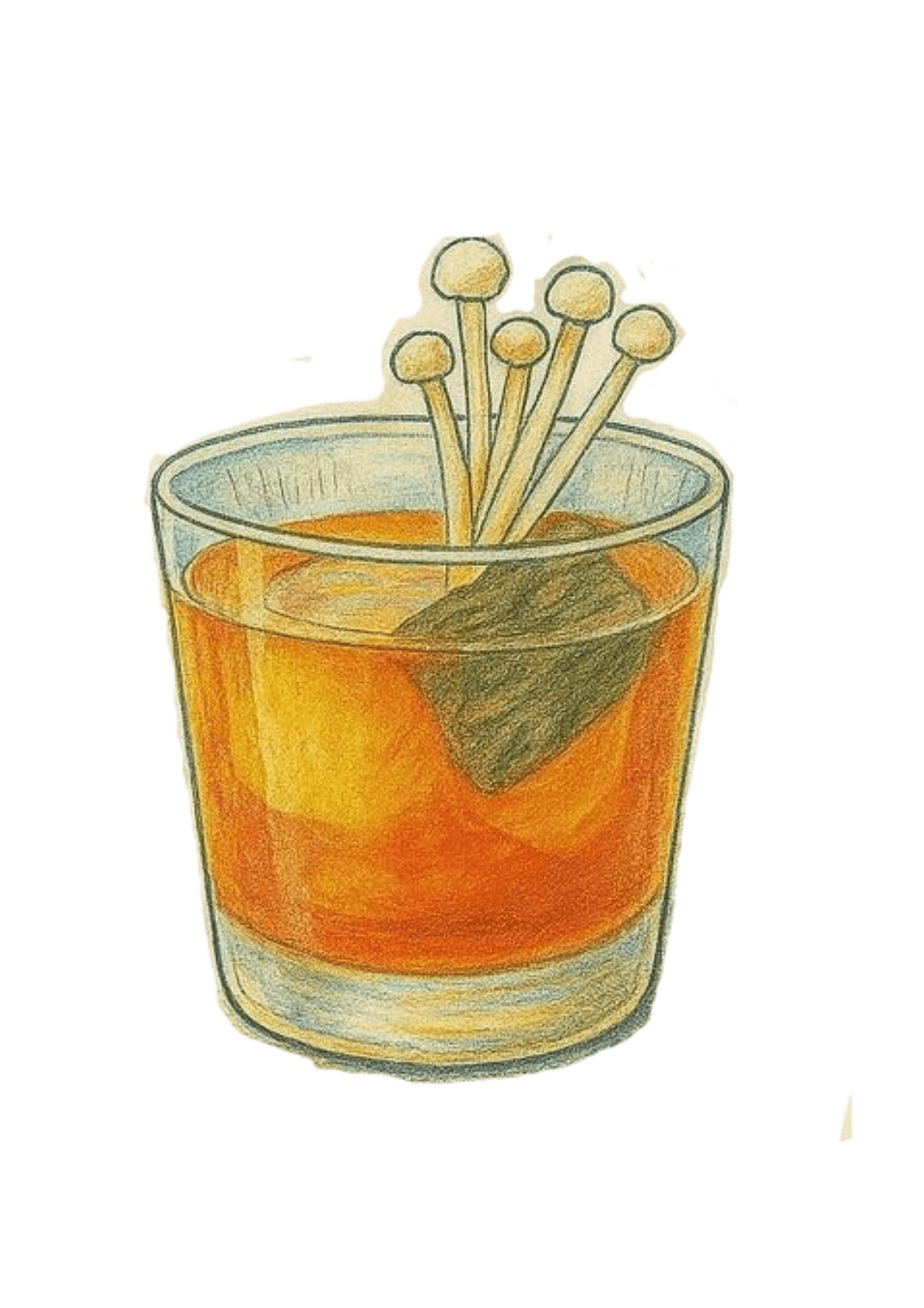 Whiskey infused Morel & Miso, Yakitori Glaze, Shrooms, Chocolate Bitters