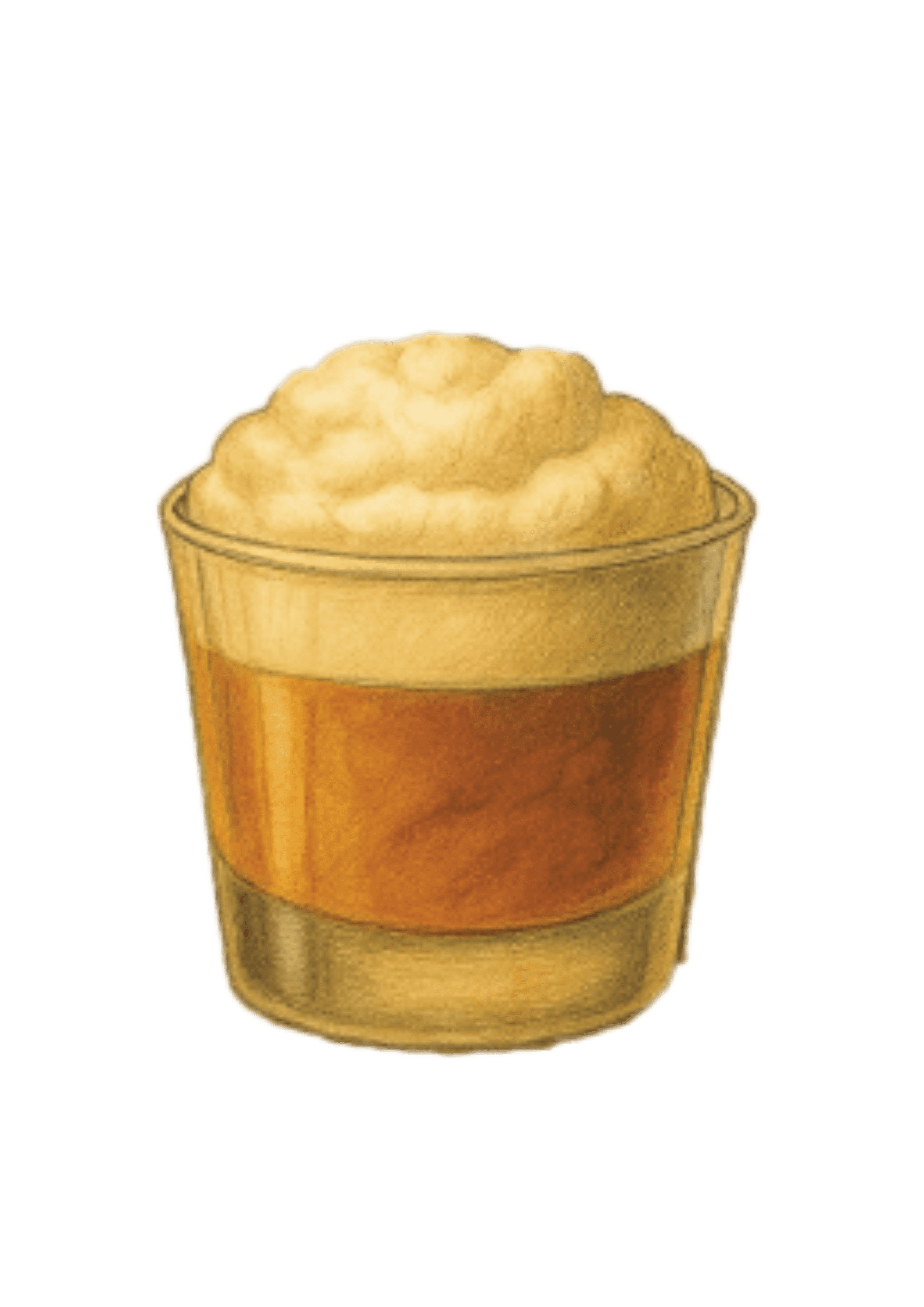 Whiskey infused with Walnuts & Cashews, Clarified Amaretto infused with Aromatic Bitters, Vanilla-Pistachio Cordial, Creamy Coconut Foam